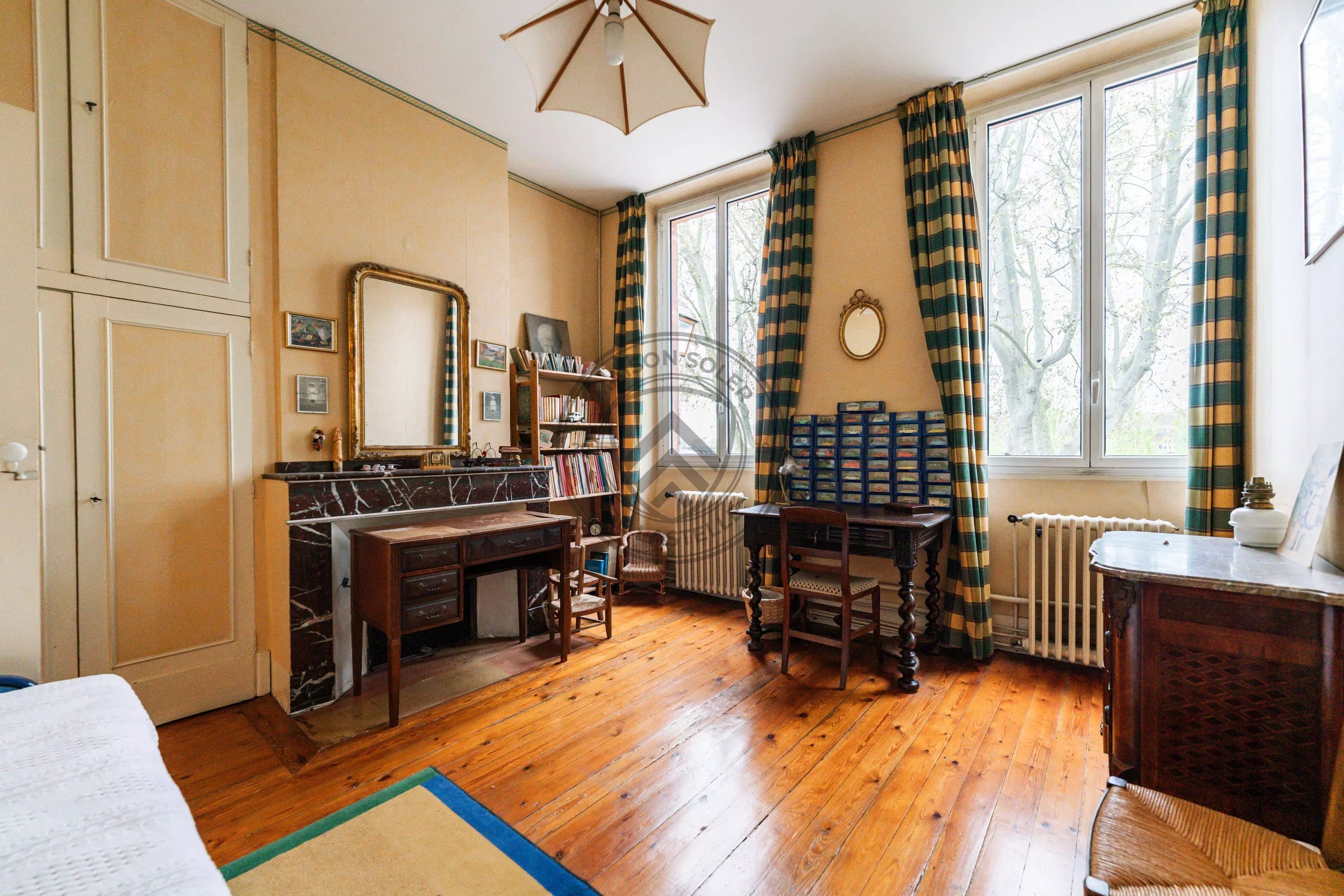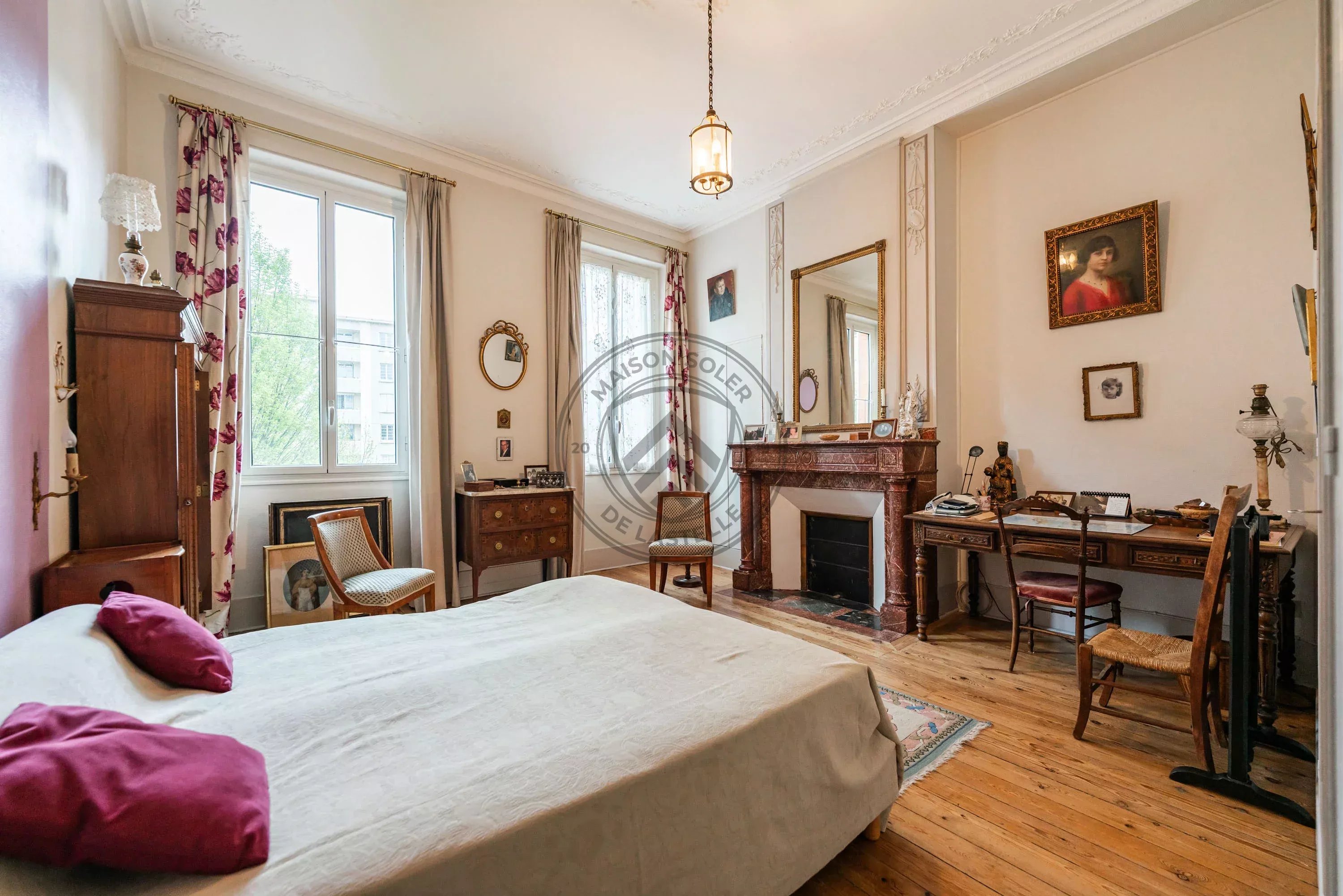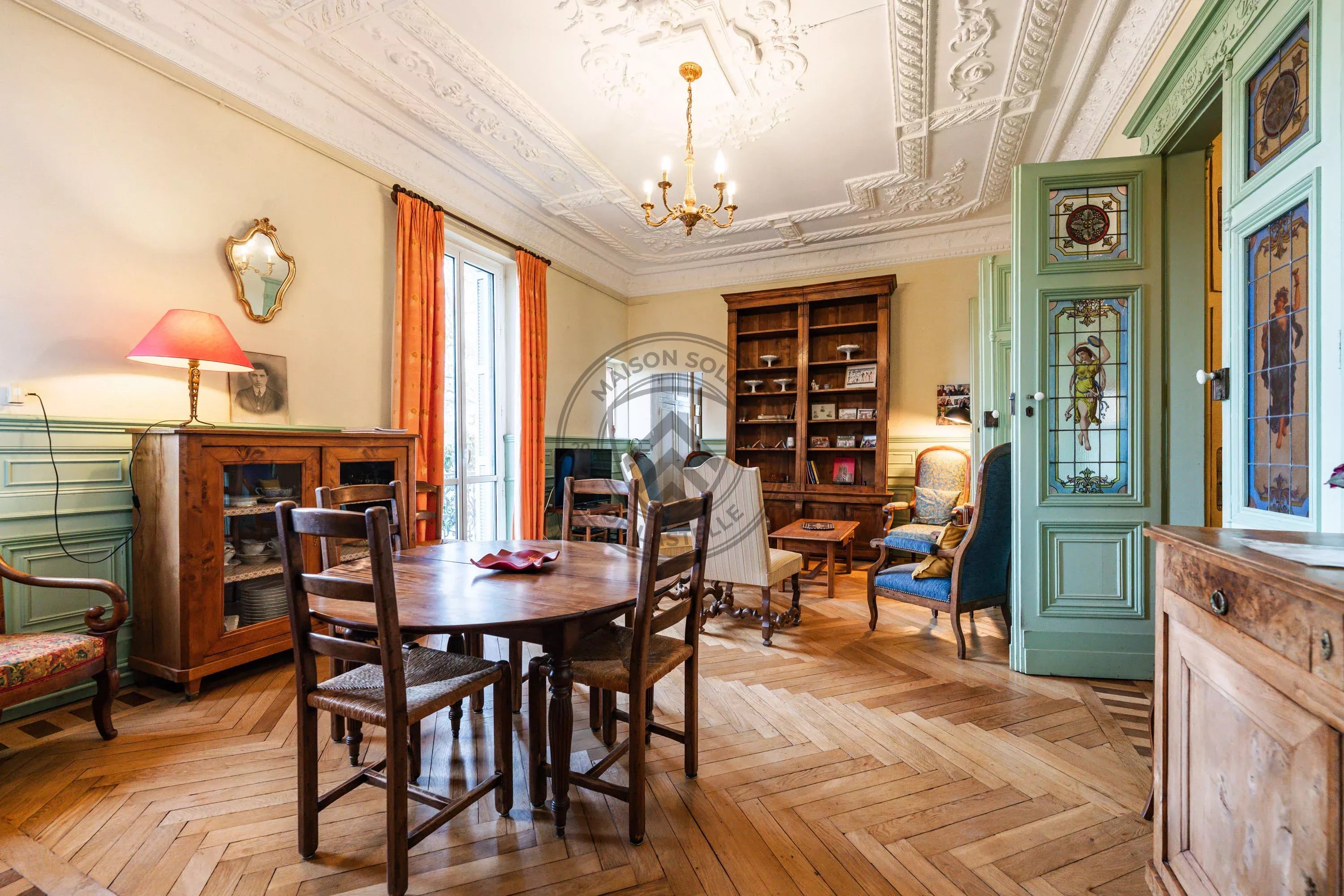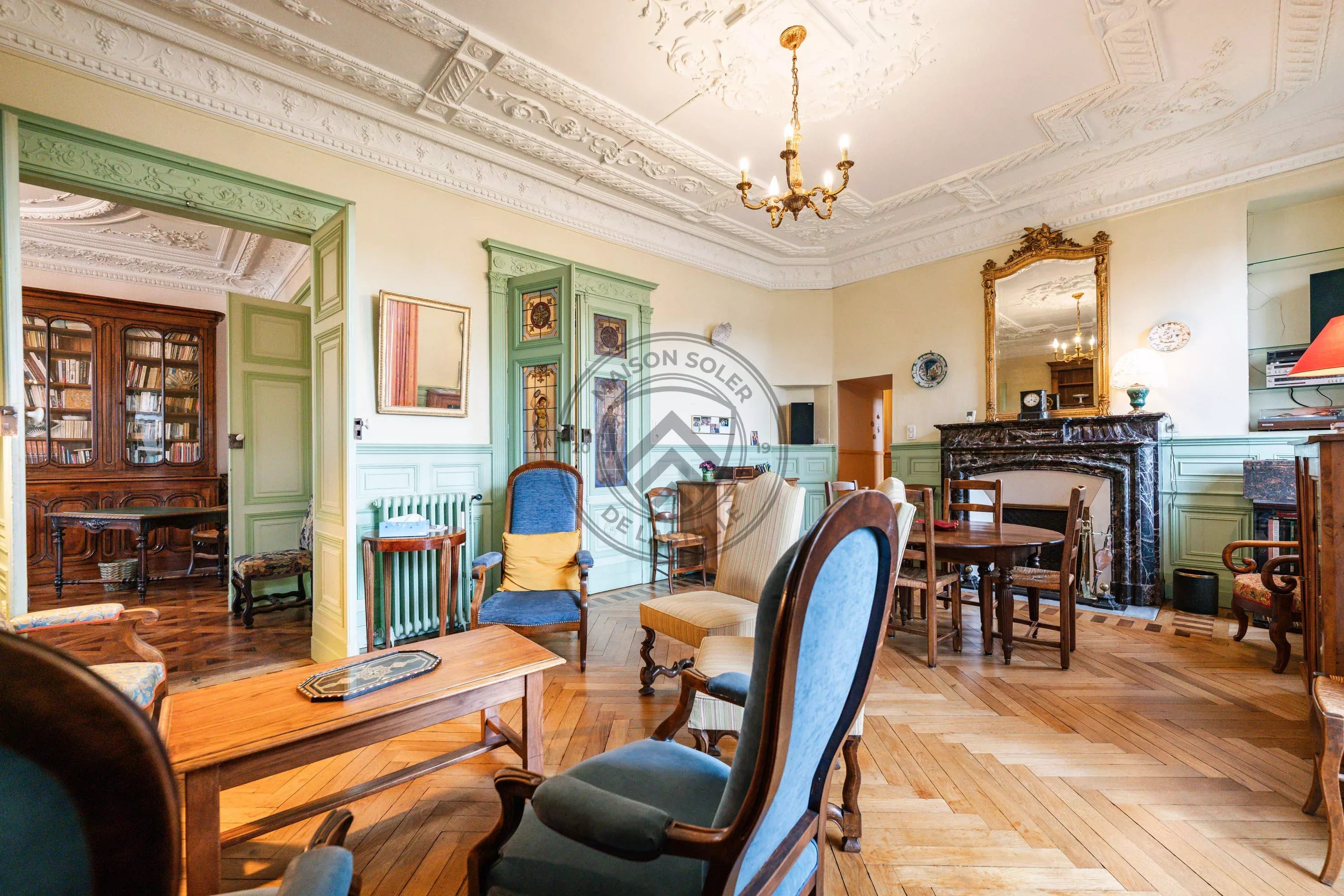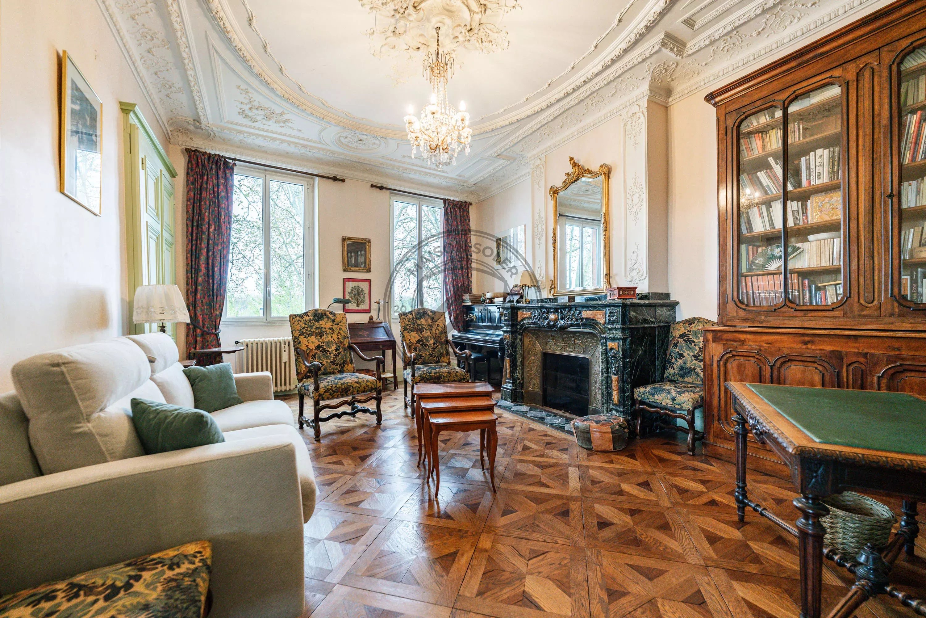 Dès l’entrée, le charme opère : moulures d’époque, cheminée exceptionnelle, parquet Versailles et points de Hongrie témoignent du cachet authentique de ce bien unique.