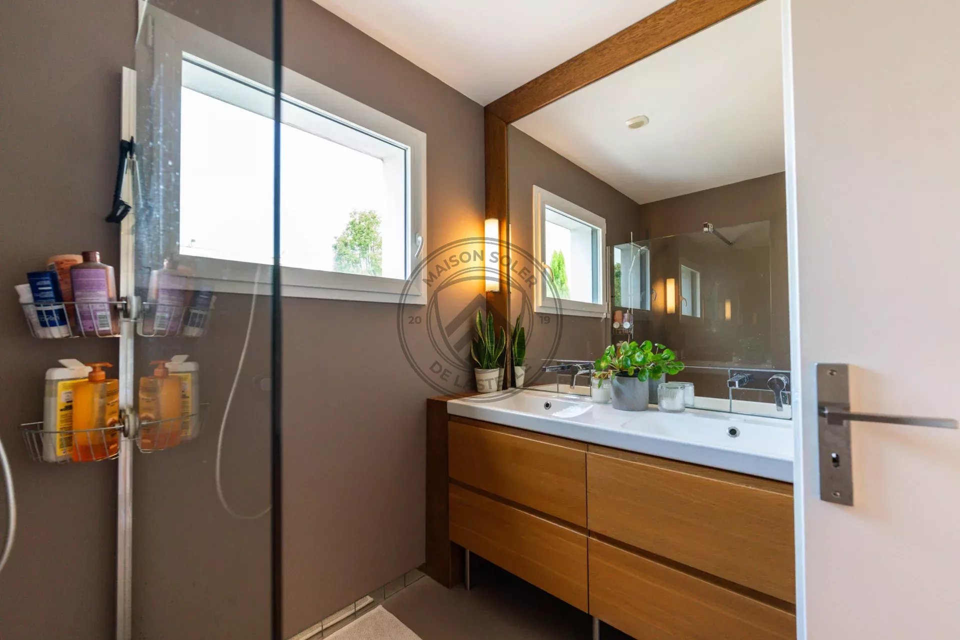 Pensée pour une vie de plain-pied agréable, elle propose au rez-de-chaussée une vaste pièce de vie baignée de lumière, ouverte sur le jardin par de grandes baies vitrées.