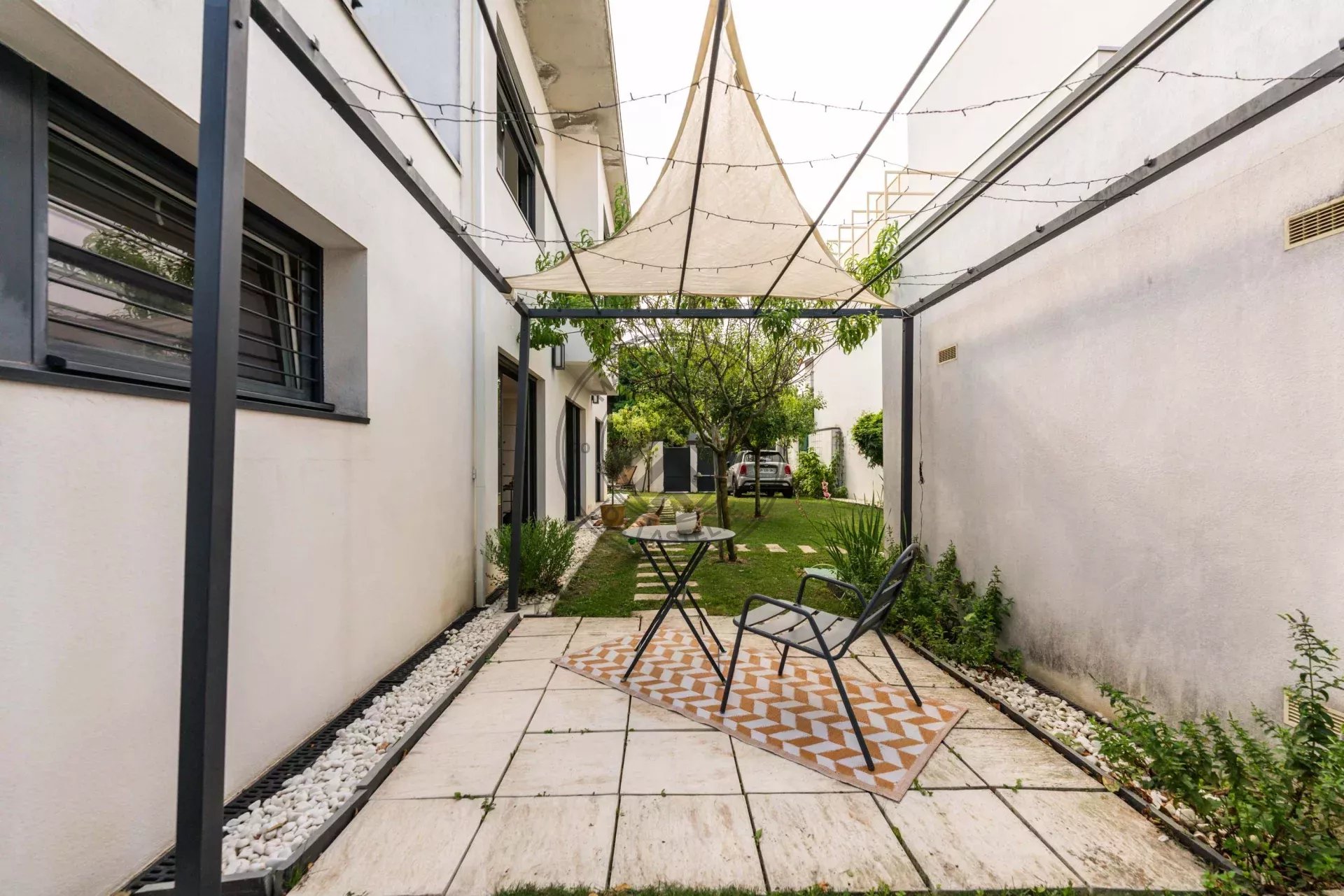 À l’extérieur, vous profiterez d’un jardin intime et soigneusement paysagé, d’une terrasse ombragée sous voile d’ombrage et d’un bassin/petite piscine pour se rafraîchir en été.