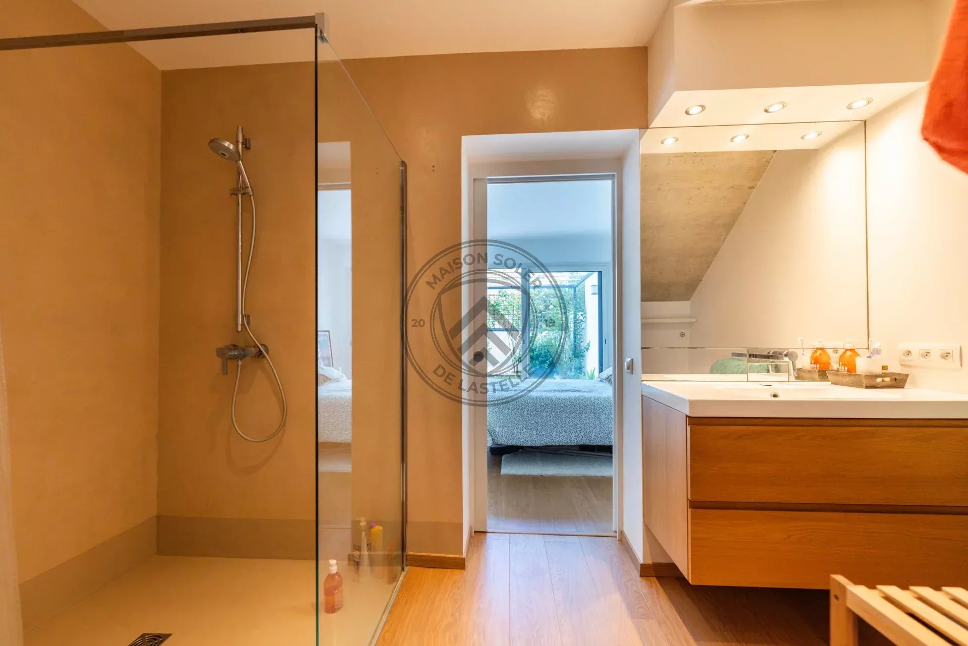 Une suite parentale en rez-de-chaussée, avec salle d’eau privative, toilettes et accès direct à la terrasse, offre un confort de vie rare et une accessibilité optimale.