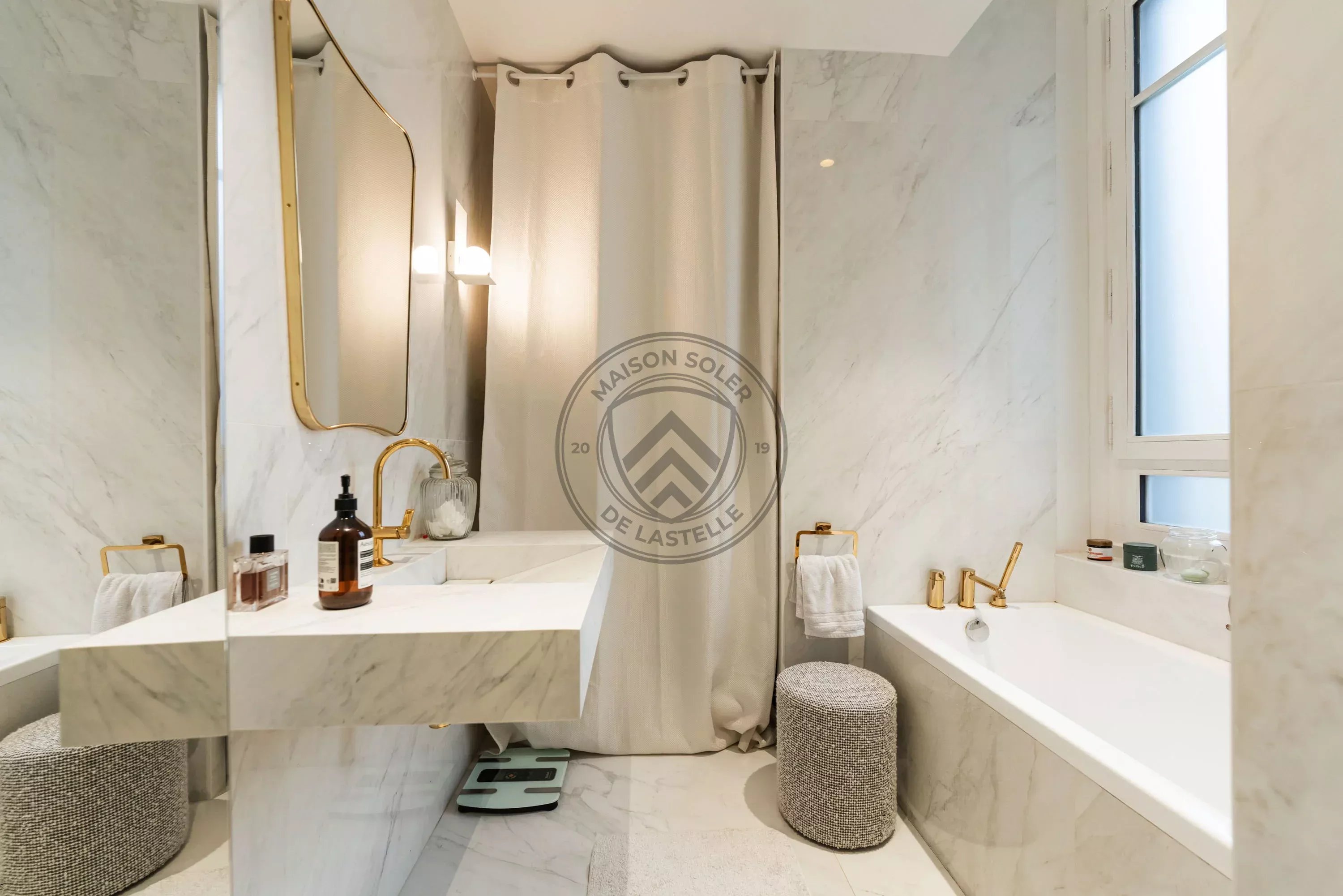 Les prestations sont à la hauteur du lieu : cheminée à l’éthanol, radiateurs d’époque en fonte entièrement reconditionnés, papier peint signé Ananbô, interrupteurs design italiens Fontini, ainsi que de nombreuses menuiseries sur mesure en chêne massif.
